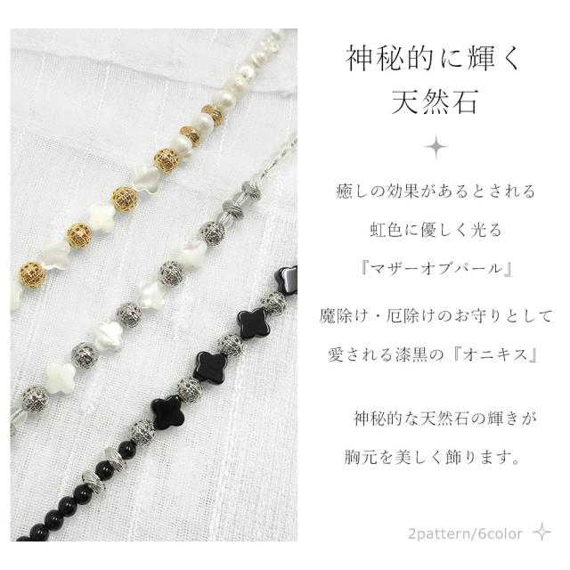 癒しの効果がある虹色に輝くマザーオブパール、魔除け・厄除けとして愛される漆黒のオニキス。