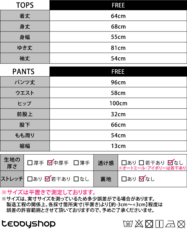 製造工程の関係上、各採寸箇所実寸(平置き)より【約-3cm〜+3cm】程度は