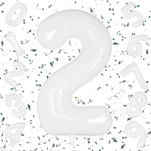 EXGOX 数字バルーン ホワイト アルミ風船 誕生日 40インチ ナンバー2 ハッピーバースデー 飾り付け 男の子 女の子 ギフト 記念日 お祝い パーティー 結婚式 披露宴