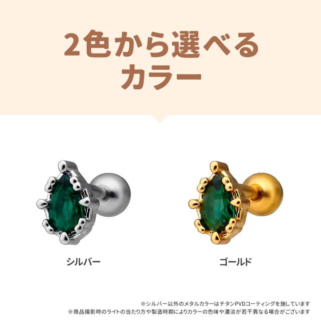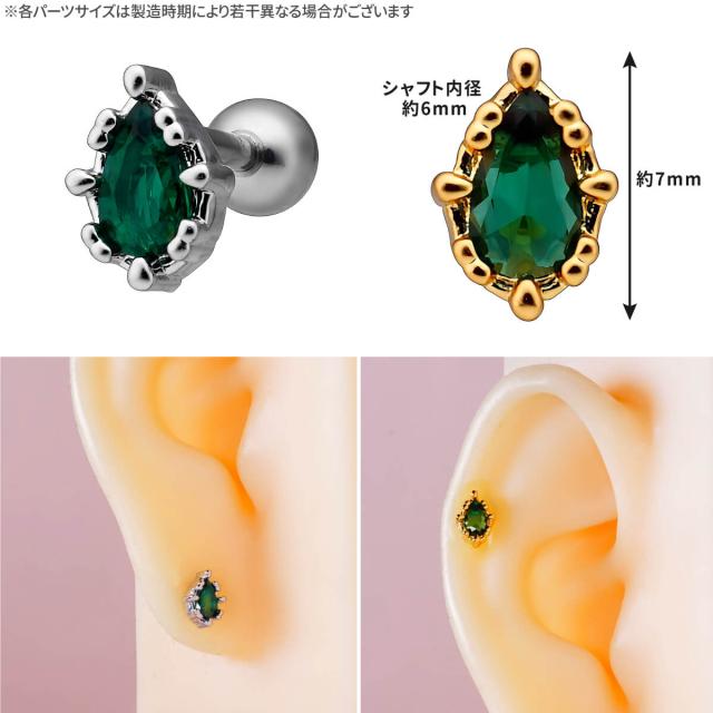 グリーン ドロップ ジュエル ストレートバーベル 14G 16G 18G サージカルステンレス ジルコニア ヘリックス 軟骨ピアス ボディピアス