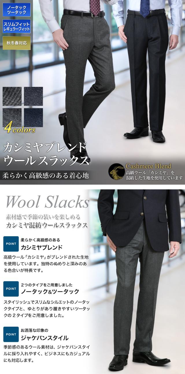 スラックス カシミヤ混 ノータック ツータック スリム レギュラーフィット カシミヤ混紡防シワ 秋冬春 スリーシーズン 暖かい 出張 ゴルフ 旅行 トラベル ジャケパン トラッド ビジネス