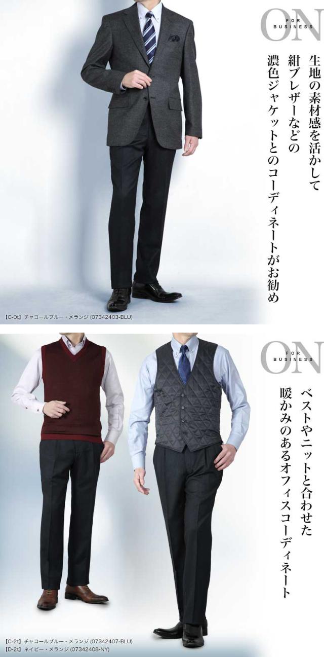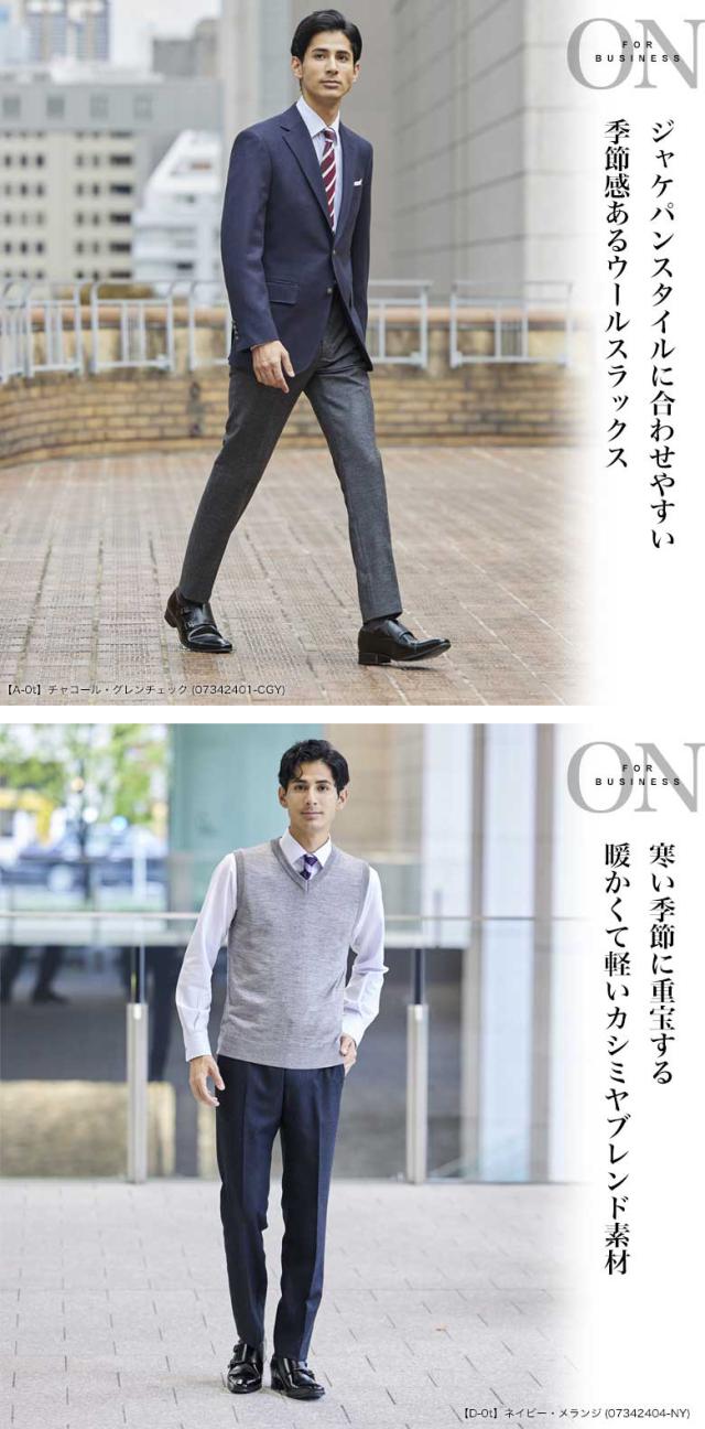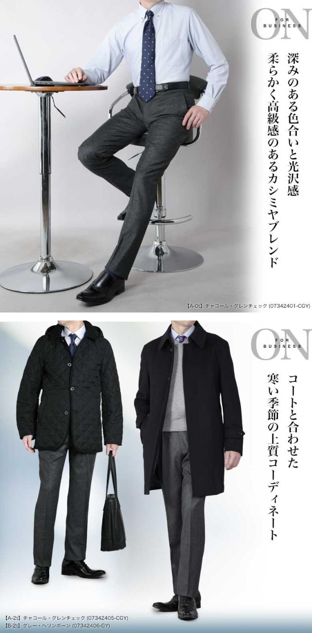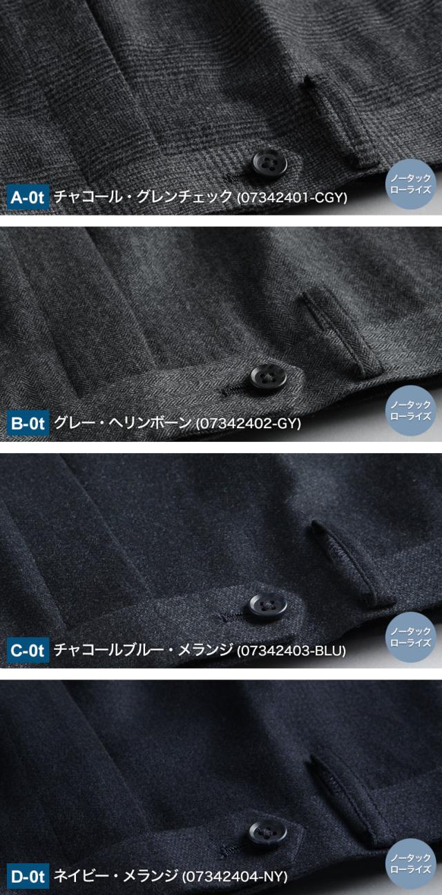 | ▼ノータック 【A-0t】チャコール・グレンチェック(07342401-CGY) 【B-0t】グレー・ヘリンボーン(07342402-GY) 【C-0t】チャコールブルー・メランジ(07342403-BLU) 【D-0t】ネイビー・メランジ(07342404-NY) ▼ツータック 【A-2t】チャコール・グレンチェック(07342405-CGY) 【B-2t】グレー・ヘリンボーン(07342406-GY) 【C-2t】チャコールブルー・メランジ(07342407-BLU) 【D-2t】ネイビー・メランジ(07342408-NY) |