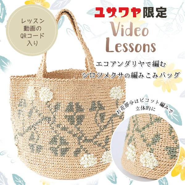 【動画付き】 編み物キット 『エコアンダリヤで編む シロツメクサの編みこみバッグ』