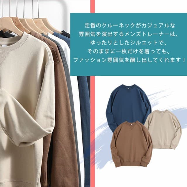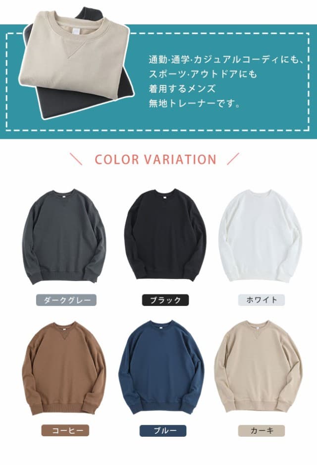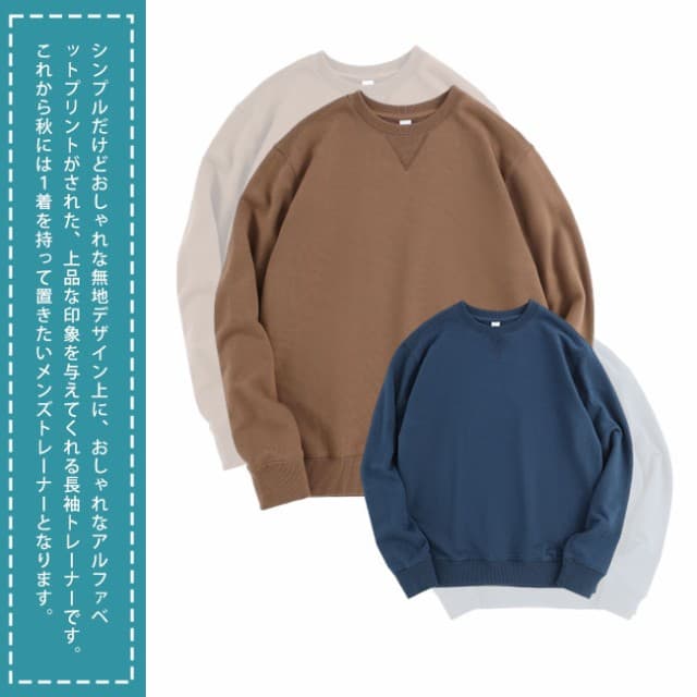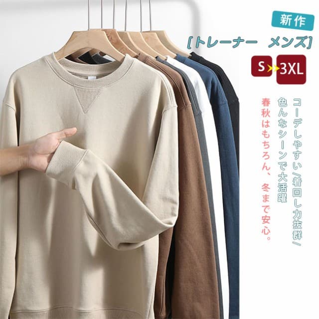 トレーナー メンズ スウェットシャツ プルオーバー 無地 長袖 クルーネック ロングスリーブ トップス 定番 おしゃれ メンズ ウェット 秋服 大きいサイズ シンプル カジュアル