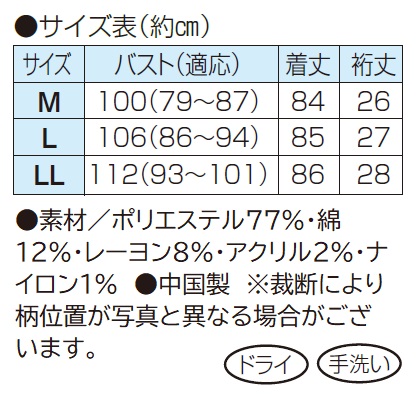 ●素材/ポリエステル77%・綿12%・レーヨン8%・アクリル2%・ナイロン1%