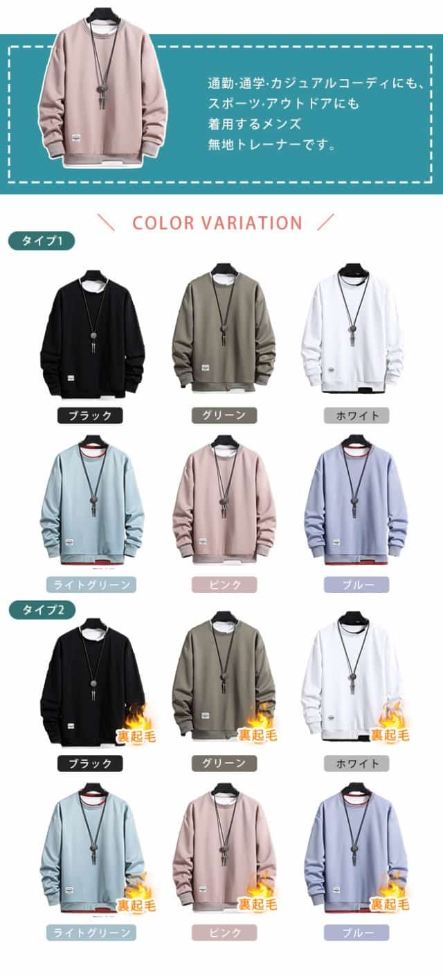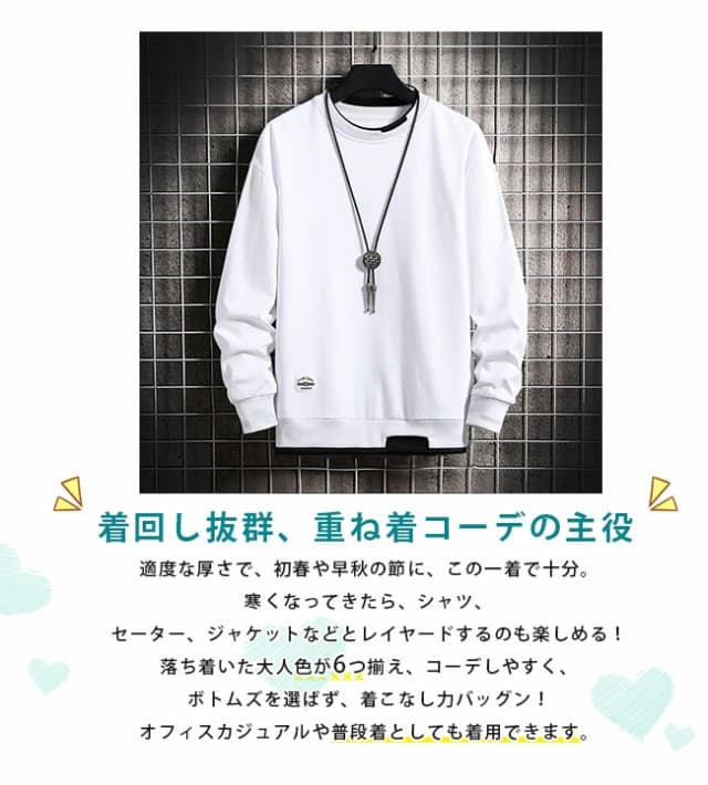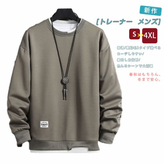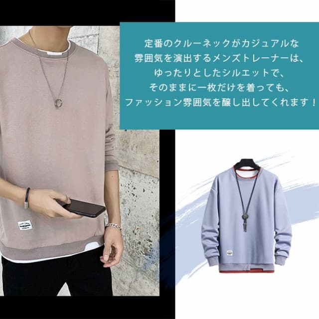 トレーナー メンズ 重ね着風 丸襟 Tシャツ 普通/裏起毛2タイプ選べる スプライシング メンズ 長袖 パーカー 大きいサイズ 軽い 柔らかい 快適 メンズ トレーナー