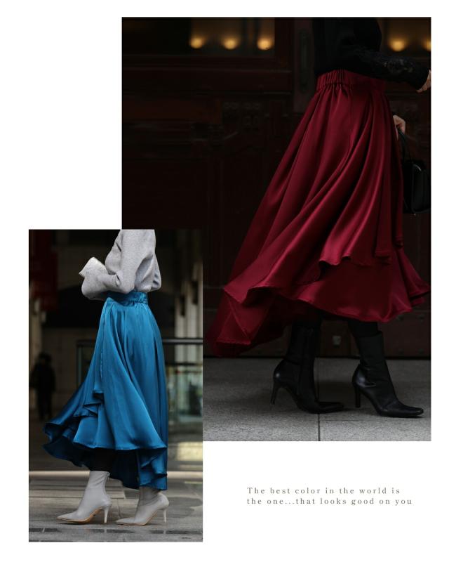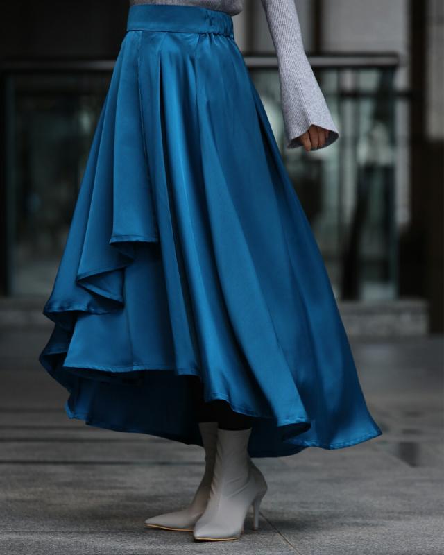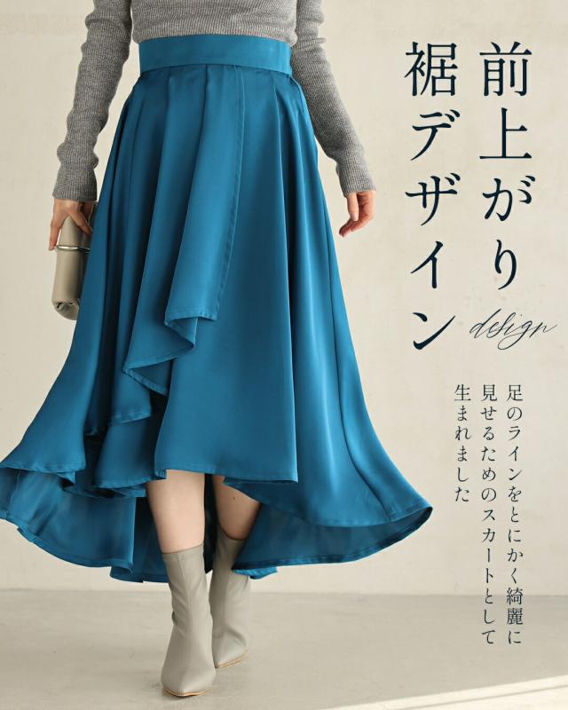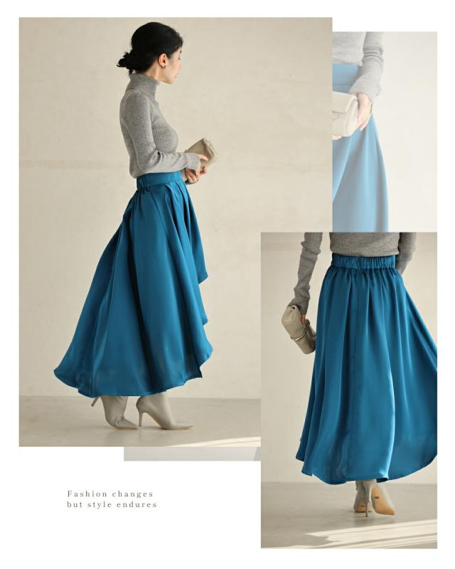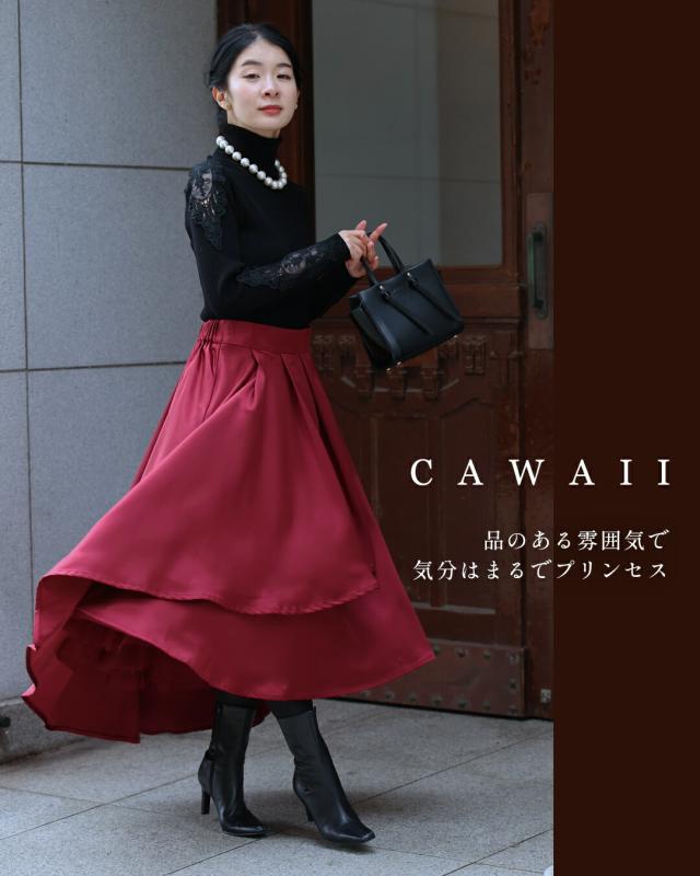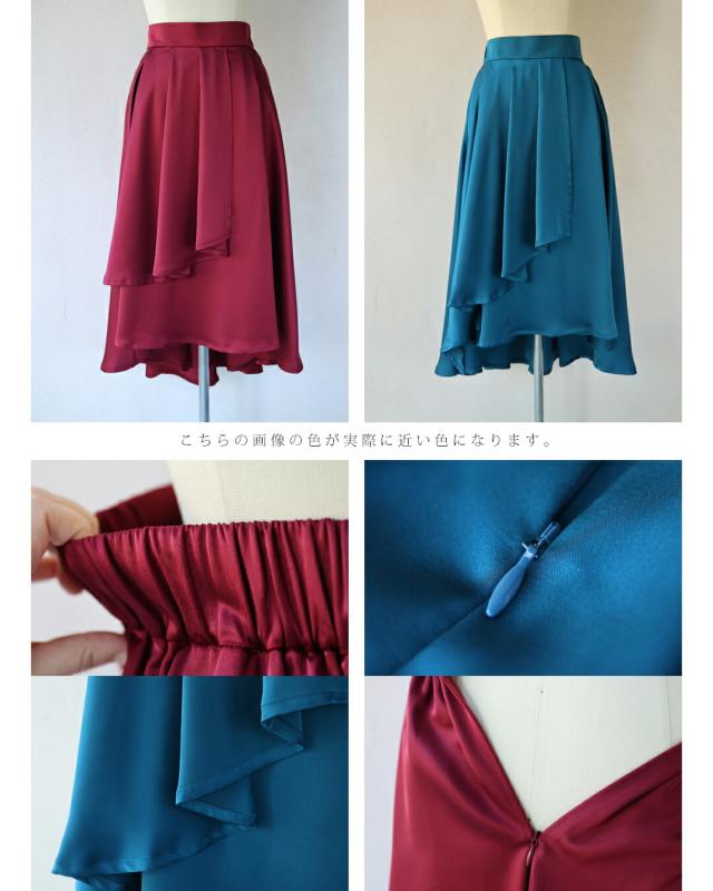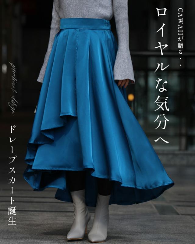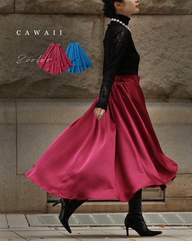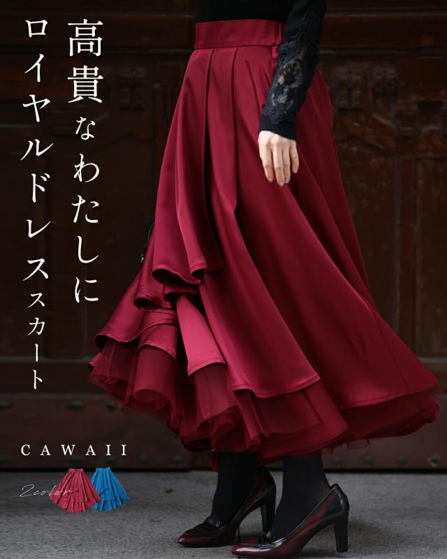 再入荷11月9日 高貴なわたしに ロイヤルドレススカート cawaii fbr00056 光沢感 後ろゴム 前上がり ブルー レッド オシャレ 個性的 大人可愛い エレガント 上品 春 秋 冬 パーティー レディース ファッション ミセス 30代 40代 50代