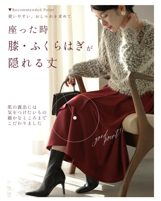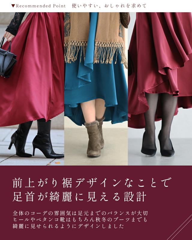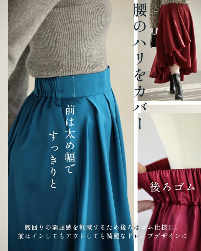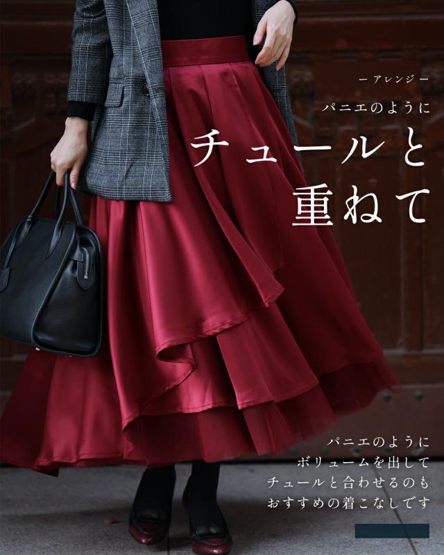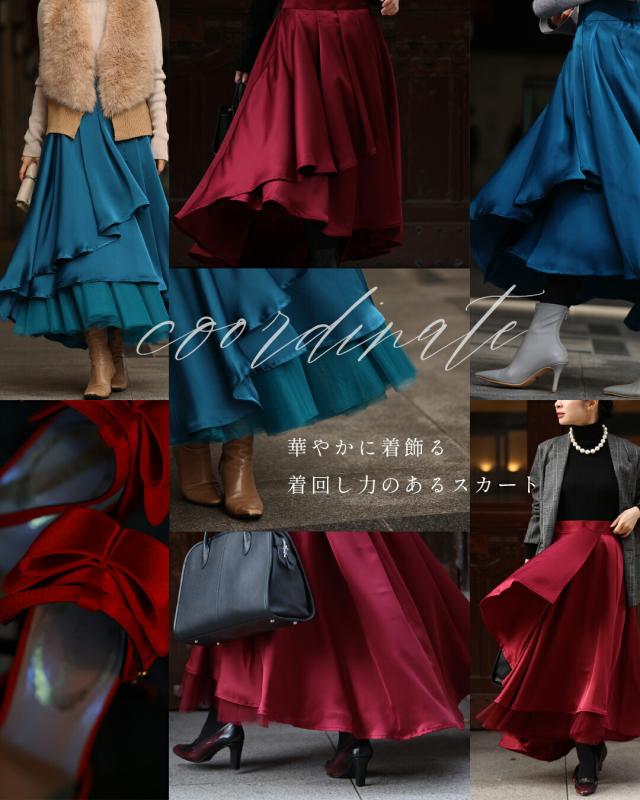 fbr00056 新作 新着 再入荷 CAWAII FRENCHPAVE フレンチパヴェ エレガント ベーシック カジュアル 可愛い かわいい カワイイ おしゃれ オシャレ お洒落 個性 個性的 定番 ベーシック 大人かわいい 大人可愛い 上品 女性らしい デザイン スタンダード ナチュラル きれいめ キレイめ シンプル フェミニン レディース レディースファッション 大人 ママ ミセス 30代 40代 50代 60代 高貴なわたしに ロイヤルドレススカート 光沢感 後ろゴム Sサイズ Mサイズ 2Lサイズ 小さめ 小さめサイズ小さい 小さいサイズ 低身長 痩せ ほっそり 標準サイズ サイズ展開 ブルーグリーン ワインレッド 春 秋 冬 秋服 秋物 冬服 冬物 ワンカラー ワントーン オケージョン パーティー 女子会 結婚式 二次会 祝賀会 同窓会