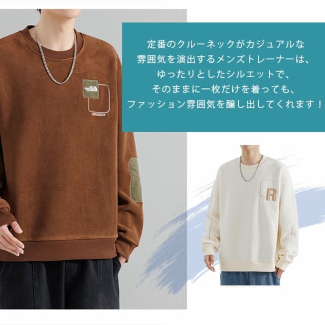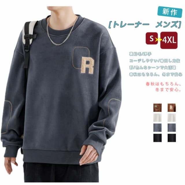 メンズ スエード トレーナー メンズ 裏起毛トレーナー 秋服 厚手 大きいサイズ クールネック おしゃれ 冬服 春服 メンズトレーナー プルオーバー メンズ 無地 ロンt シンプル トップス カジュアル