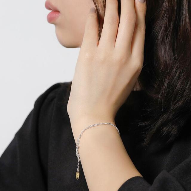 ブレスレット 喜平チェーン メンズ レディース シルバー925 ブランド シンプル 細め 喜平ブレスレット 18金コーティングゴールドチャーム FLUI 2mm 男性 女性 cfb-0117