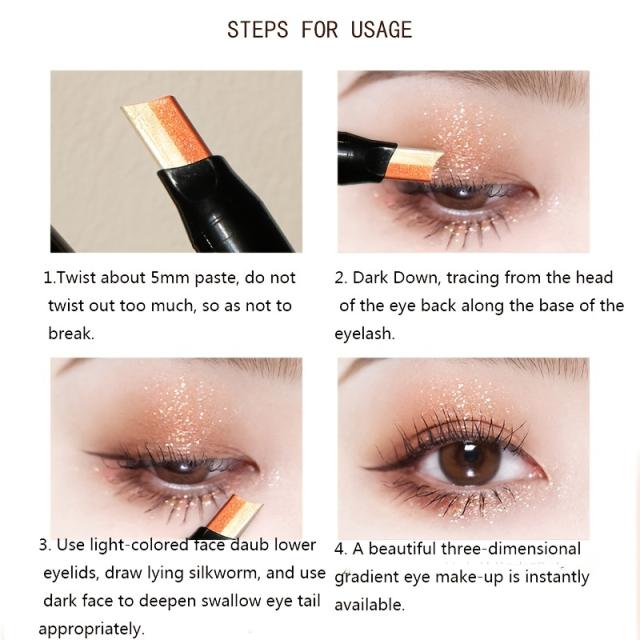 グラデーション ツートン アイシャドウ スティック、目元を明るくするパール&グリッター アースブラウン系カラー、スマッジプルーフ ラジー アイシャドウ スティック、植物スクワラン配合