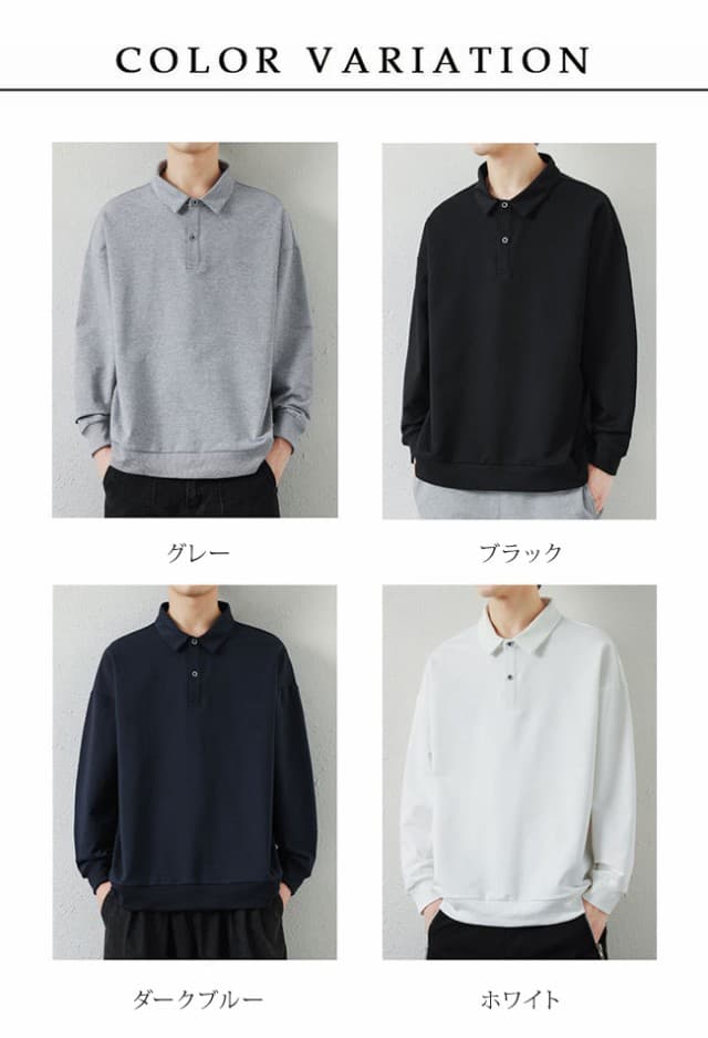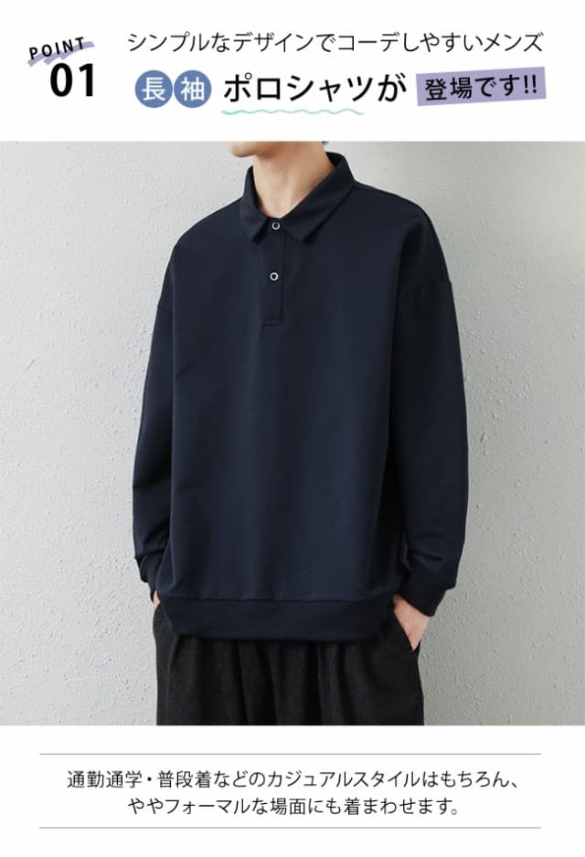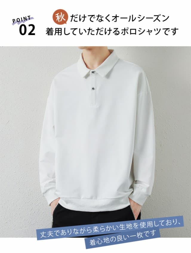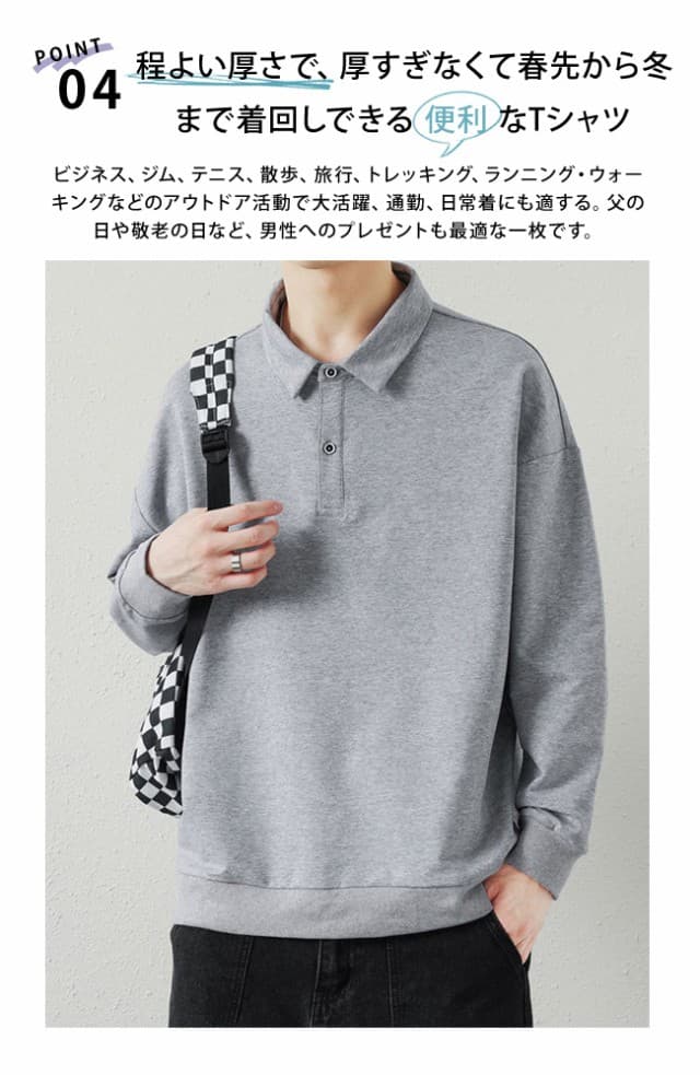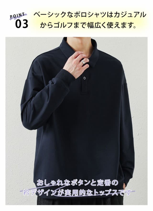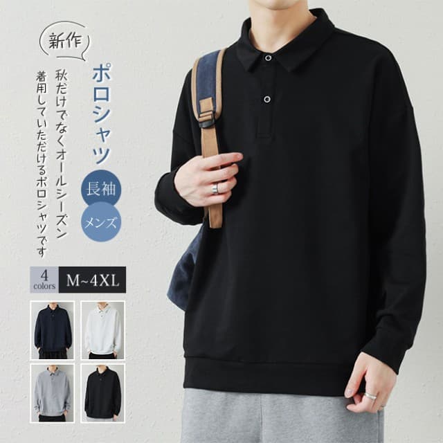 長袖 ポロシャツ メンズ 秋服 Tシャツ 綿 おしゃれ 無地 ゆったり ゴルフウェア カジュアル ビジネス 大きいサイズ