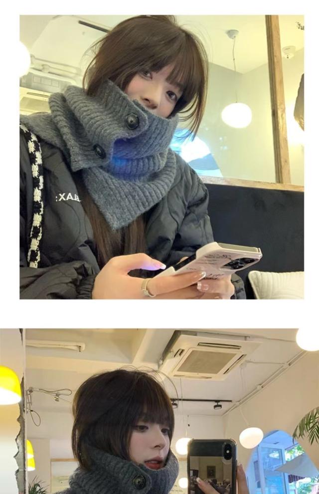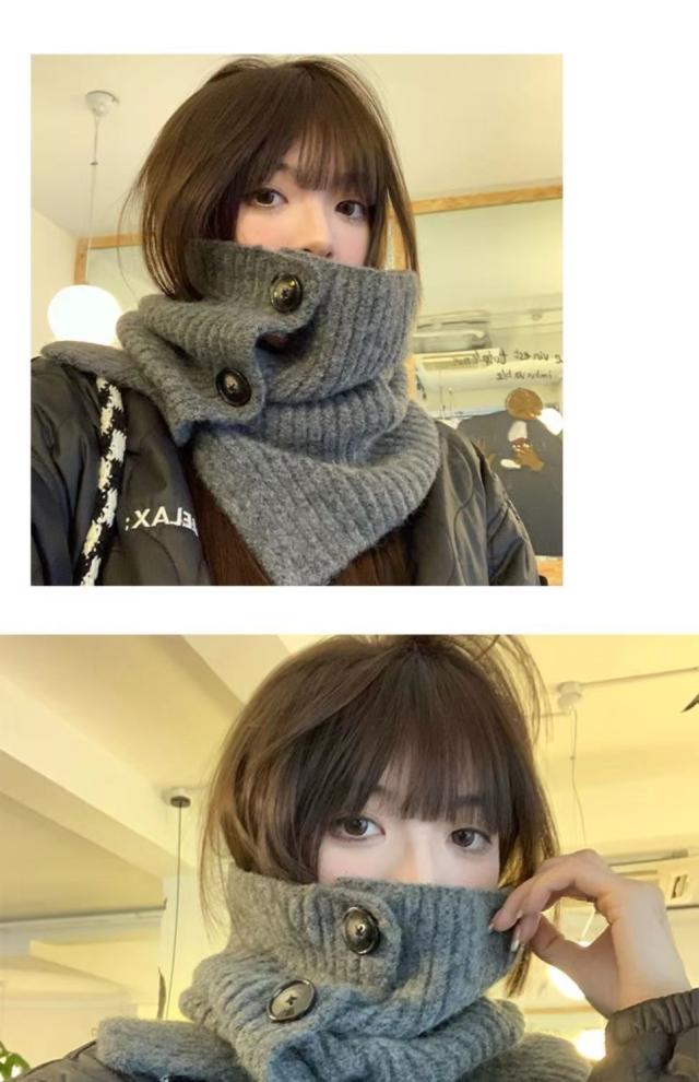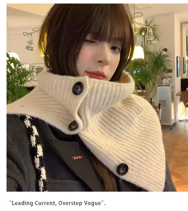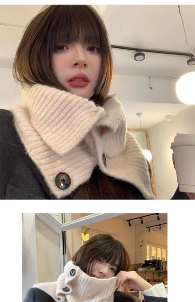 ニットネックウォーマー ファッションデザイン 高領スカーフ ボタン付きネックウォーマー 秋冬保温ショール レディース