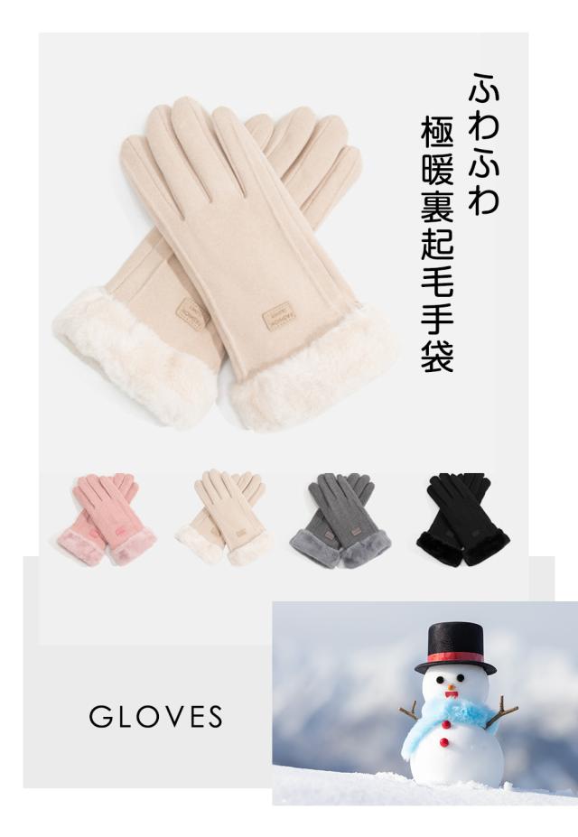 ★指先までぽかぽか裏起毛。手首部分と裏地はあったかふわふわなファーを使用。指先までしっかり暖かく包みます。