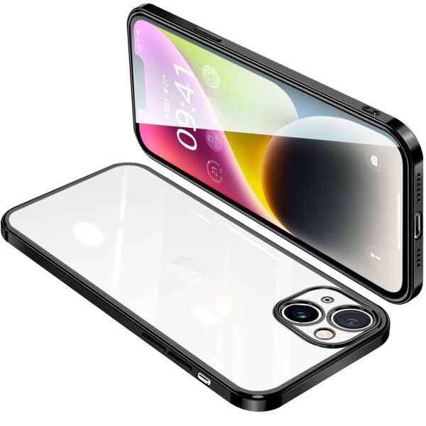 ONETIAOLONG iPhone14 用 ケース クリア アイフォン14 カバー 透明 スマホケース 全面保護 耐衝撃 軽量 メッキ加工 TPU 薄型 ストラップホール付き 滑り止め 落下防止 6.1インチ(ブラック)