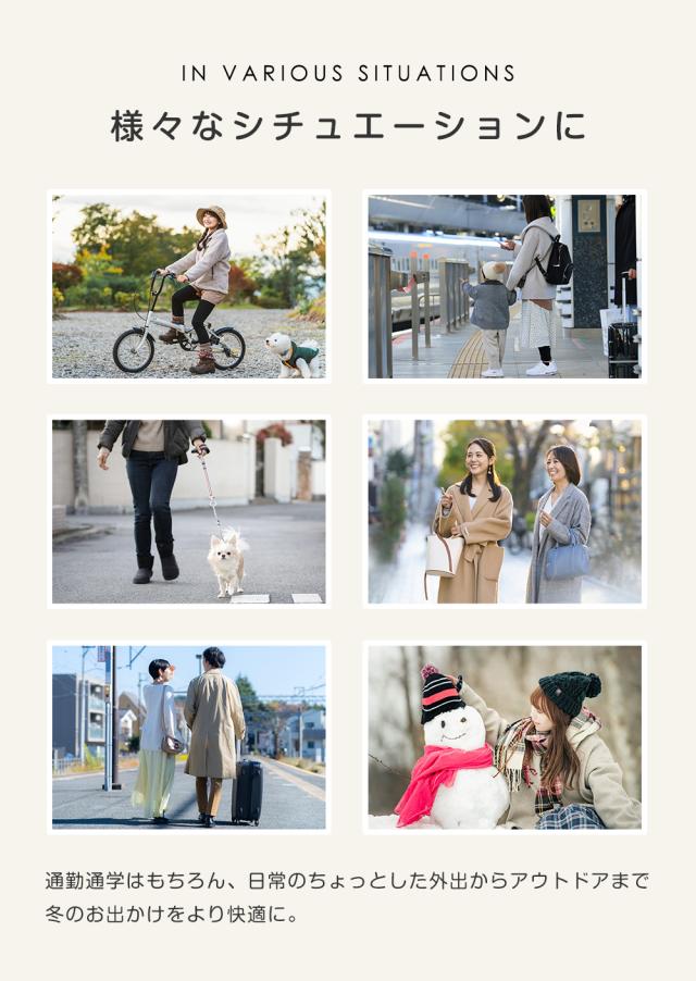 ★風を通しにくい。表地は肌触りの良い素材で風を通しにくく。自転車での移動にも◎冷たい風の日も暖かく保温してくれます。