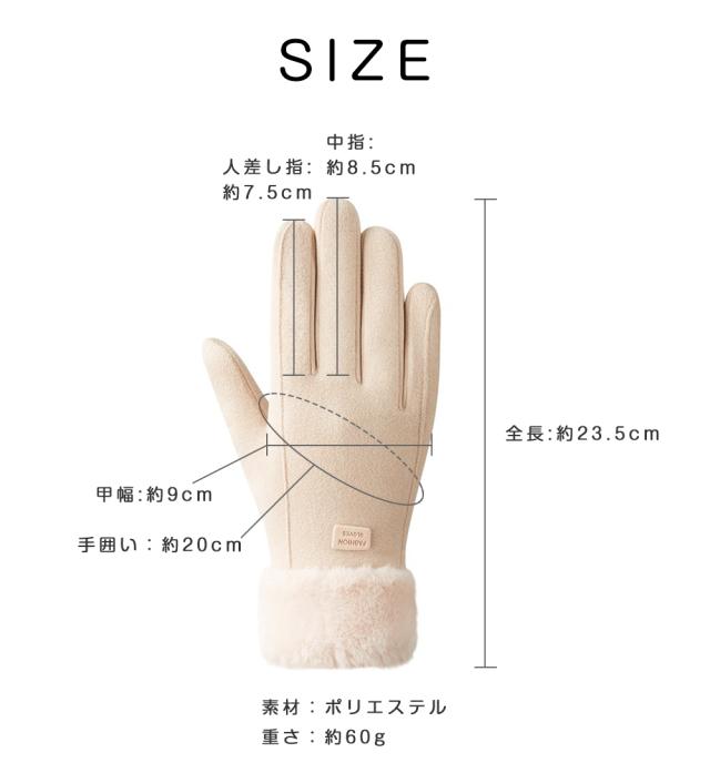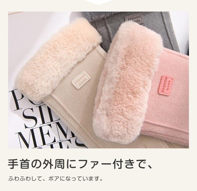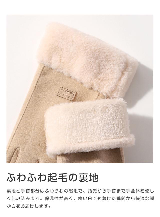 ★指先までぽかぽか裏起毛。手首部分と裏地はあったかふわふわなファーを使用。指先までしっかり暖かく包みます。