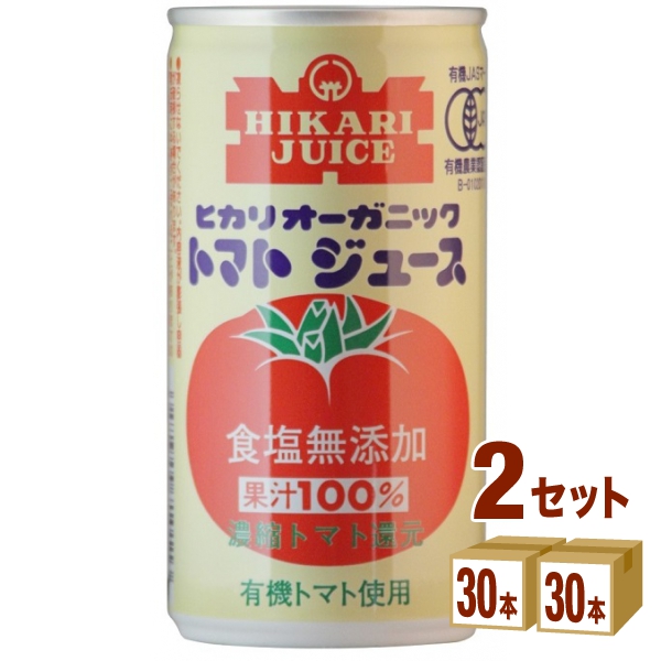 光食品 ヒカリ オーガニック トマトジュース 食塩無添加 190g×30本×2ケース (60本) 飲料