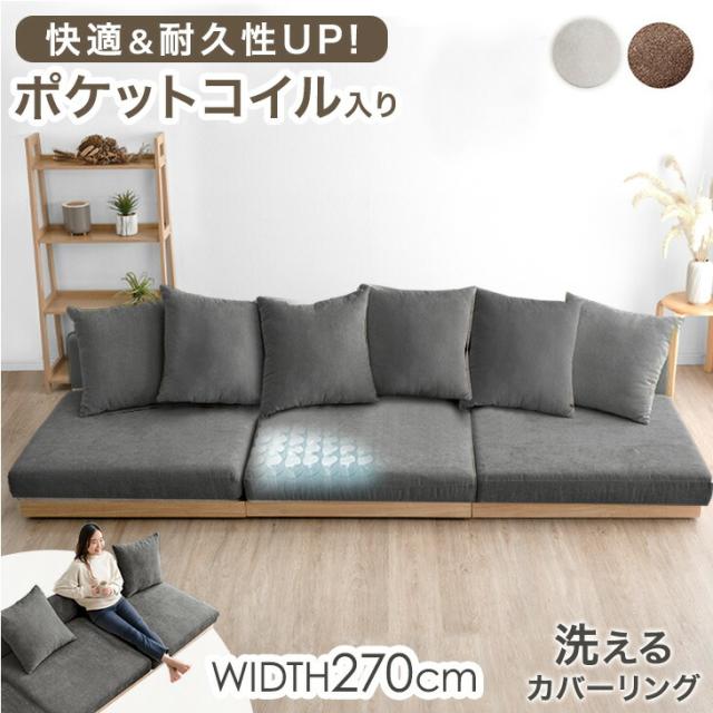 【正午〜P5%還元】 快適&高耐久 ポケットコイル フロアソファ 幅180cm 洗える カバーリング 3人掛け ソファ ウッドフレーム ローソファ ソファー ローソファー フロアソファー 2人掛け ファブリック 天然木 木製 木製フレーム おしゃれ