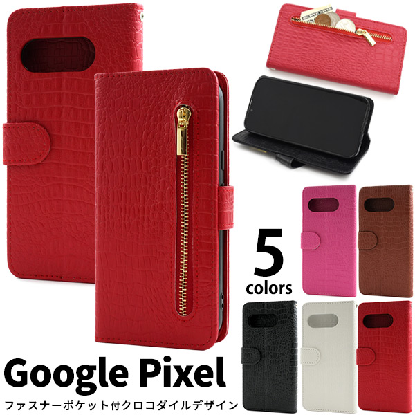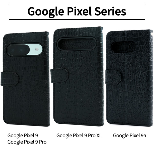 Google Pixel シリーズ用 クロコダイルレザーデザイン手帳型ケース