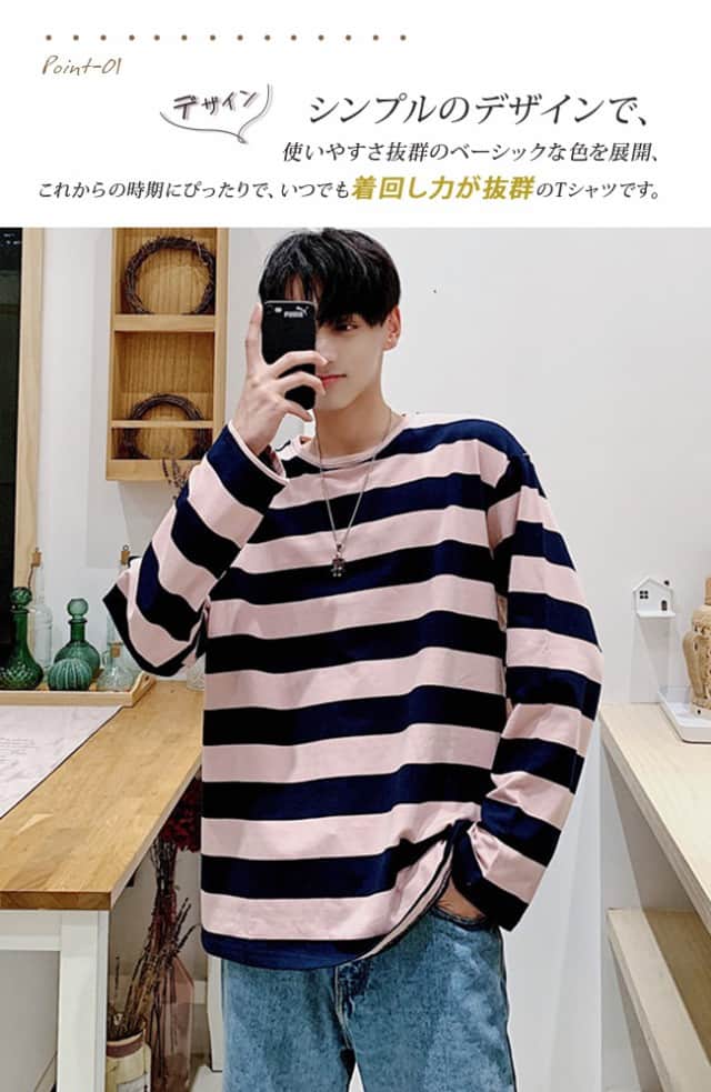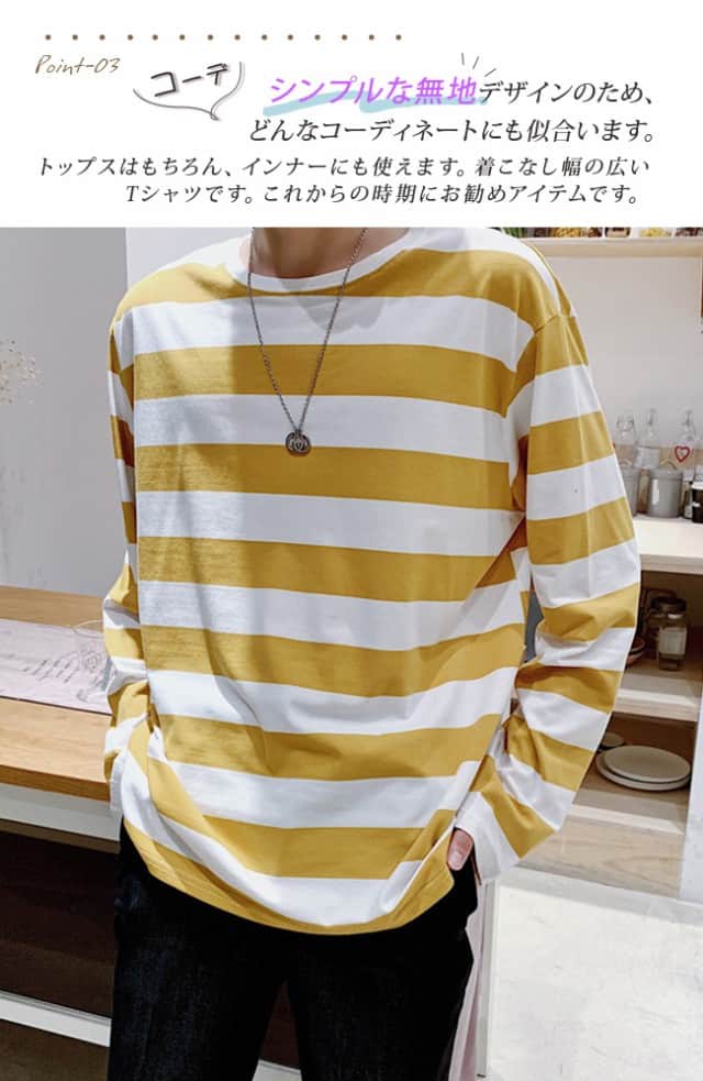 長袖 tシャツ メンズ ゆったり クルーネック カットソー ボーダー柄 ファッション プルオーバー ティーシャツ ストリート系 オシャレ メンズ トップス 韓国風