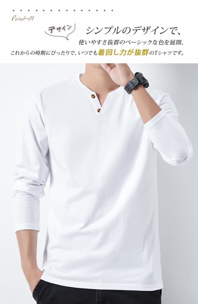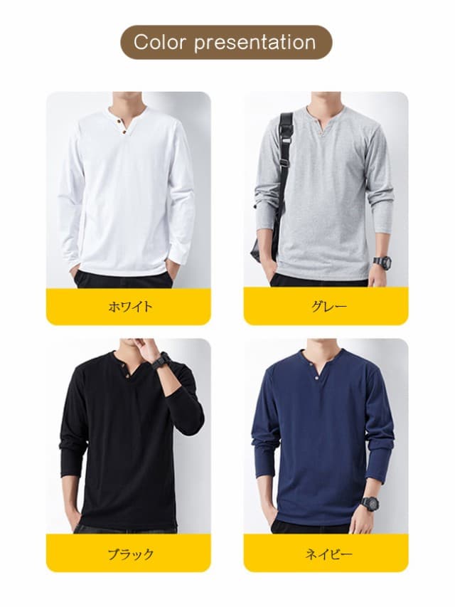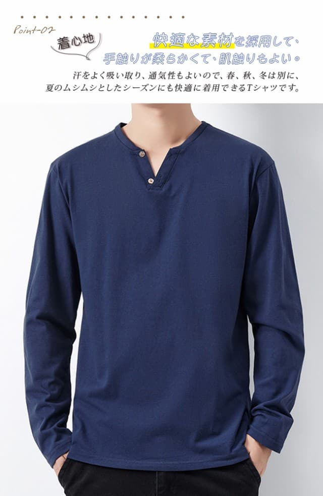 tシャツ メンズ 長袖 綿100% ヘンリーネック 無地 カジュアル おしゃれ インナーシャツ ロングtシャツ メンズ 肌着