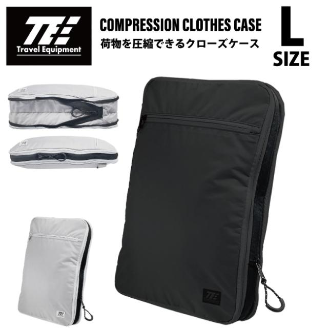 トラベルイクイップメント トラベル圧縮ポーチ 2気室 圧縮クローズケース L TPK007 ( 衣類圧縮ポーチ スーツケース収納 旅行用 トラベルイクイプメント 二気室 コの字ガード ポケット付 )