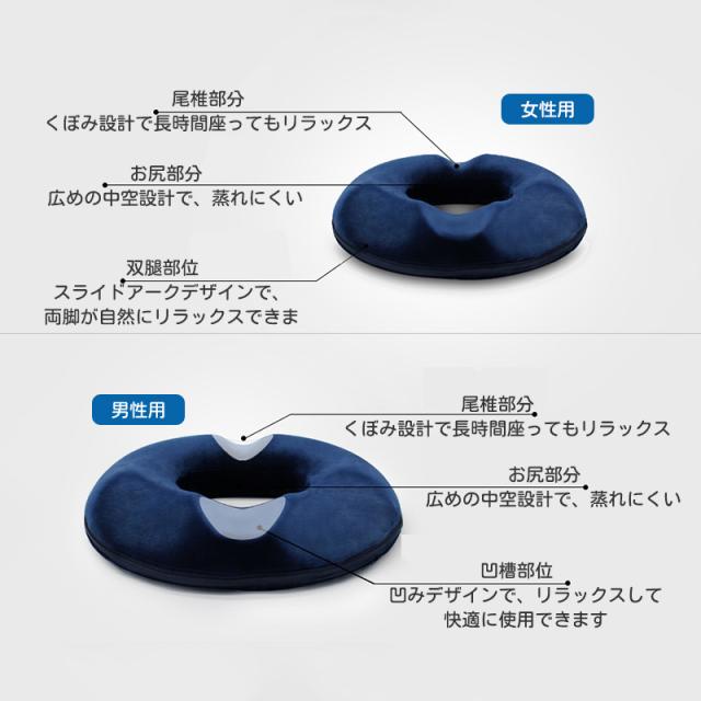 自然な傾斜で骨盤をサポート、ドーナツクッション