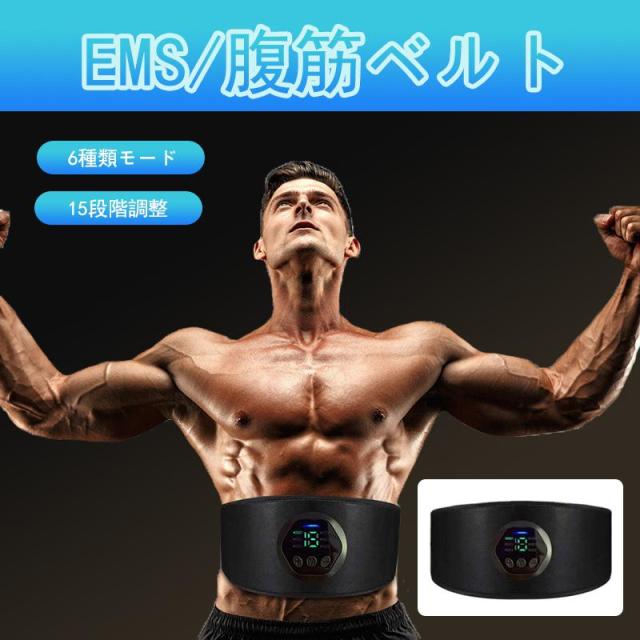 ems 腹筋ベルト 6種類モード 15段階調整 強力モード USB充電式 液晶表示 男女兼用 ぽっこりお腹 ダイエット トレーニング 運動不足 筋トレ テレワーク シンプル 父の日 プレゼント 母の日 健康