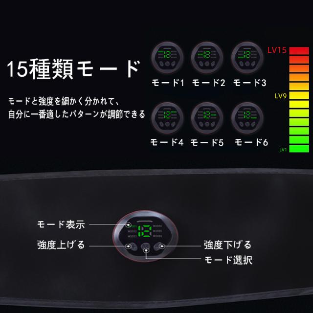 ems 腹筋ベルト 6種類モード 15段階調整 強力モード USB充電式 液晶表示 男女兼用 ぽっこりお腹 ダイエット トレーニング 運動不足 筋トレ