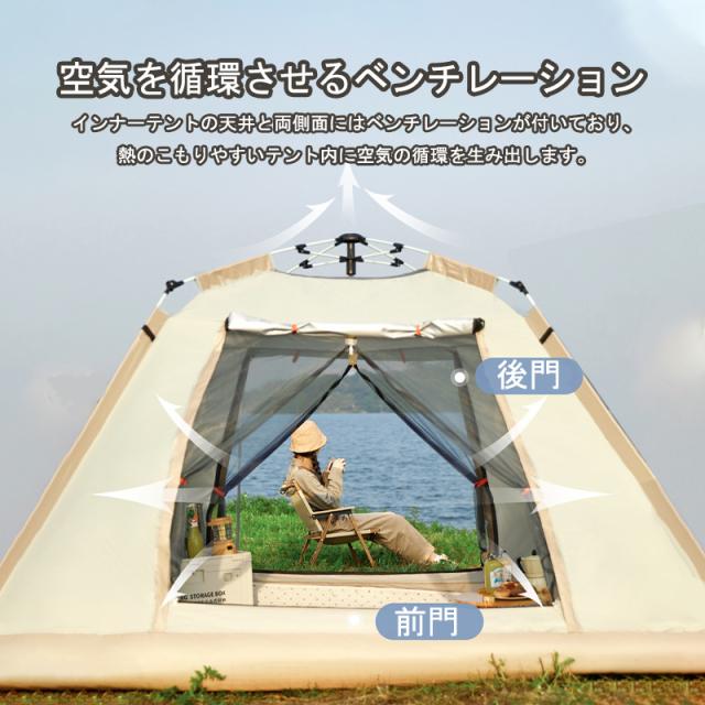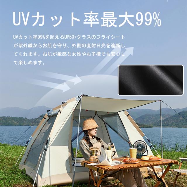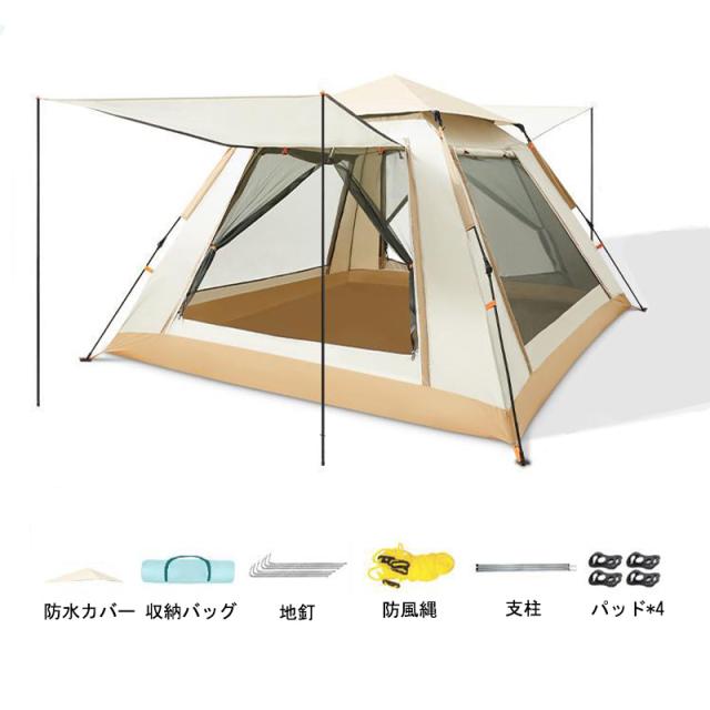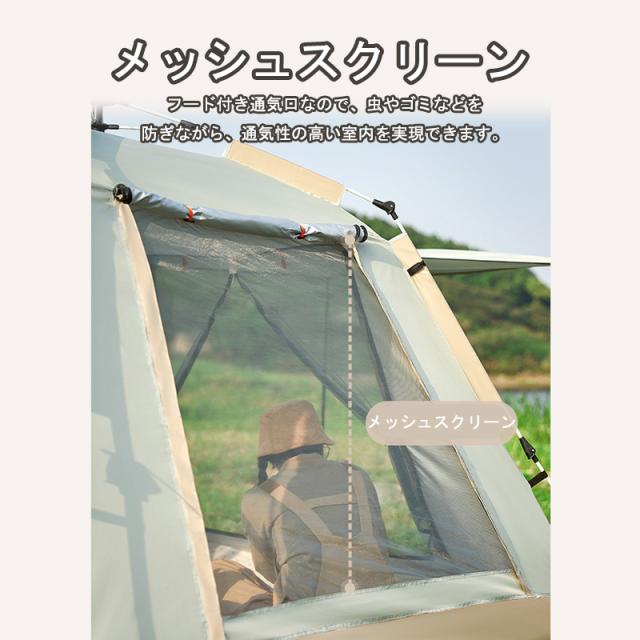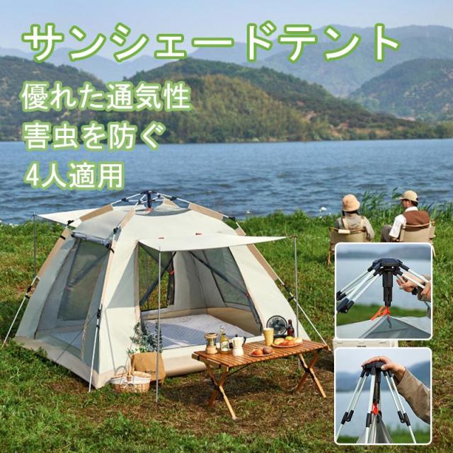 テント 4人用 ワンタッチ 220cm幅 ポップアップ 軽量 コンパクト ドーム型 簡単設営 アウトドア キャンプ用 公園 紫外線対策 持ち運び 防水 ワイド 広い 大きい 遮光 遮熱 メッシュ 防虫 海 海水浴 川 庭 ベランダ