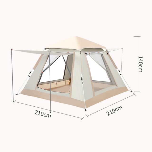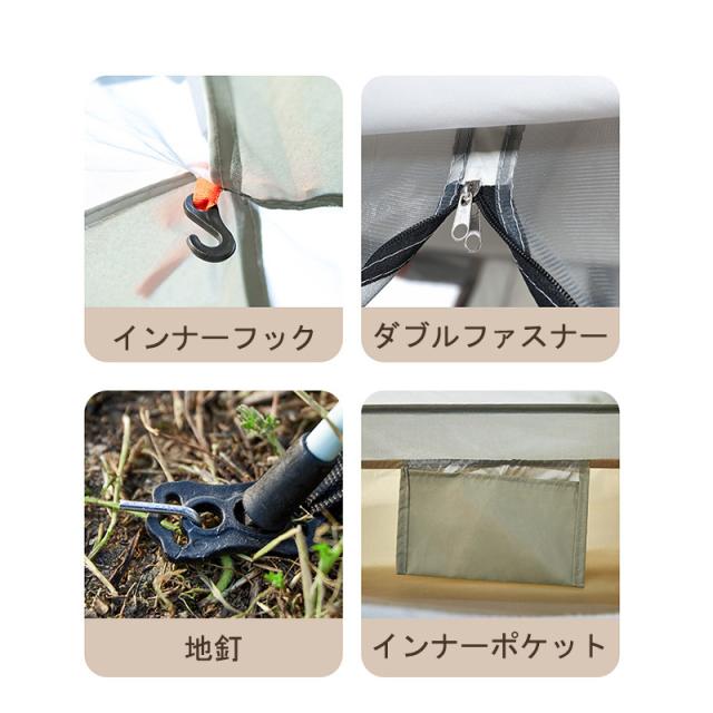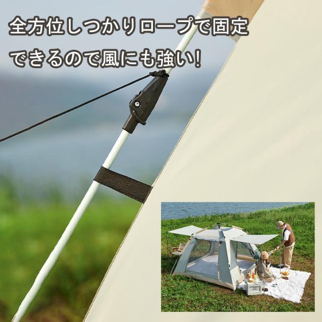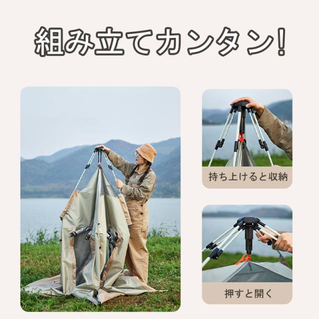 伸縮式のアルミニウム合金自動ブラケット構造を採用し、数秒で設営が完了。両手を使わず、簡単にテントを広げられるので、キャンプ初心者でも安心です。