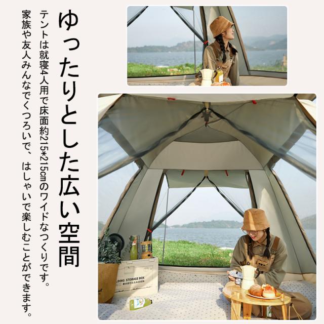 テント 4人用 ワンタッチ 215cm幅 ポップアップ 軽量 コンパクト ドーム型 簡単設営 アウトドア キャンプ用 公園 紫外線対策 持ち運び 防水