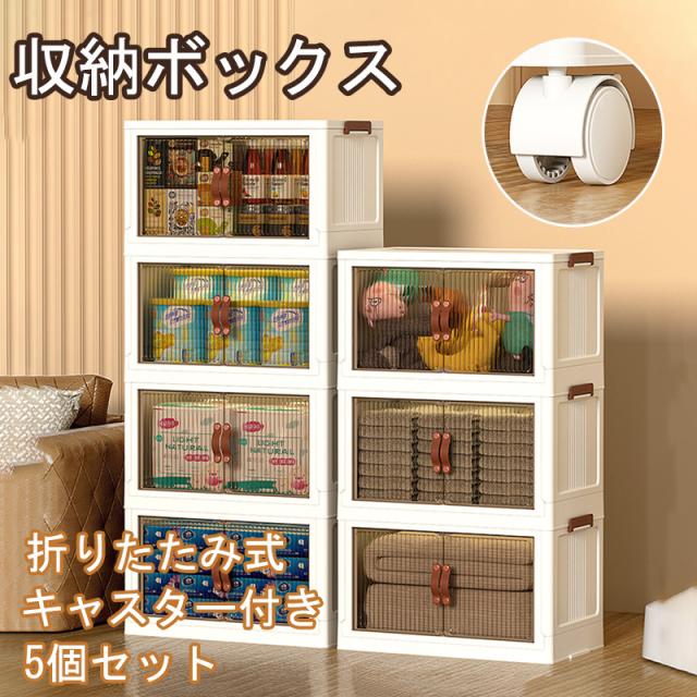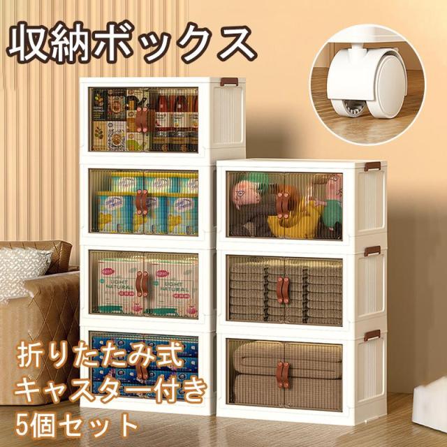 収納ケース キャスター付き 収納ボックス 前開き 5個セット 5段 大容量 折りたたみ 収納棚 扉付きラック積み重ね 衣装ケース クロゼット衣類 布団 折り畳み プラスチック おしゃれ おもちゃ 収納箱 小物収納ケース 組立簡単 耐久性 書類
