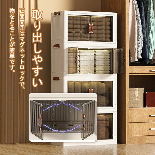 収納ケース キャスター付き 収納ボックス 前開き 5個セット 5段 大容量 折りたたみ 収納棚 扉付きラック積み重ね 衣装ケース クロゼット