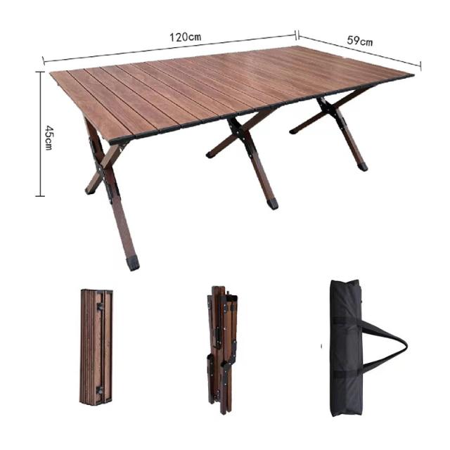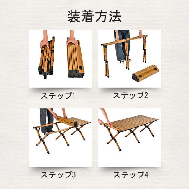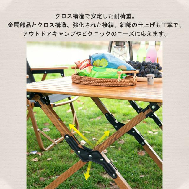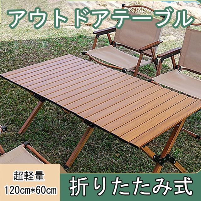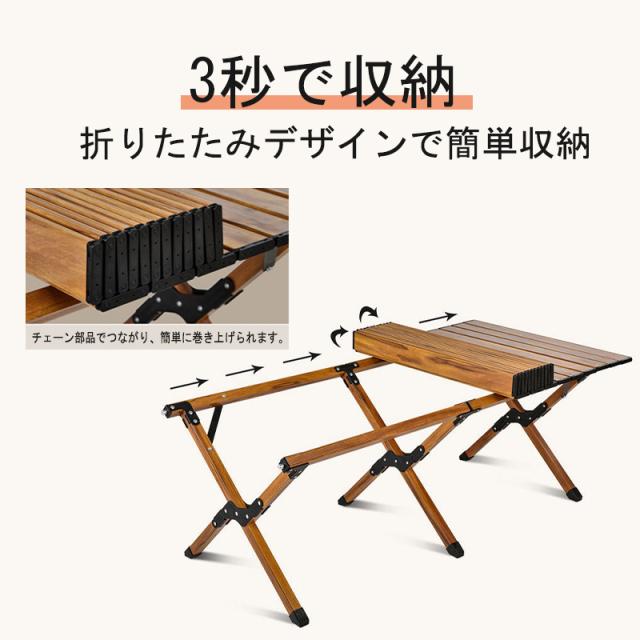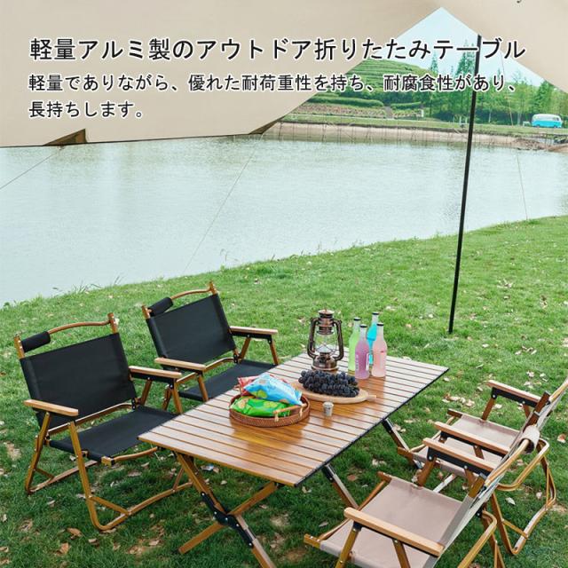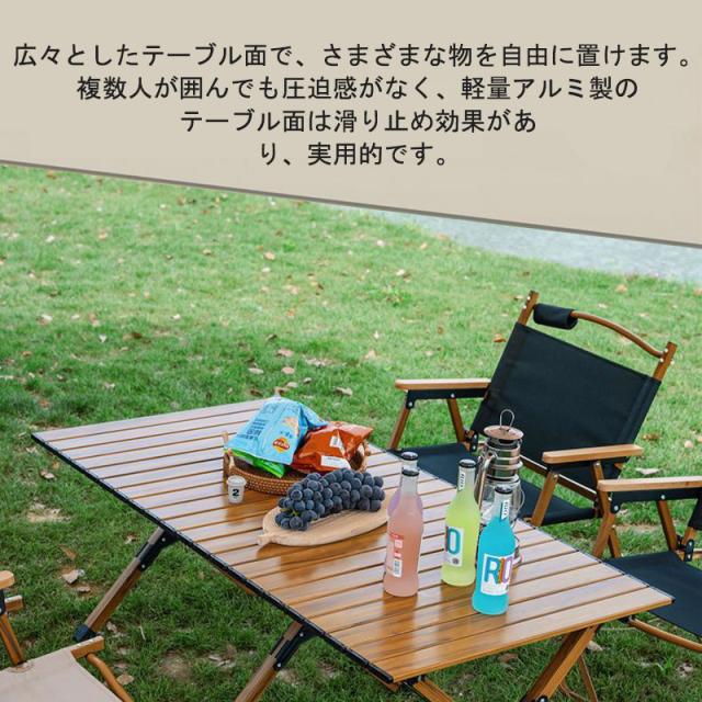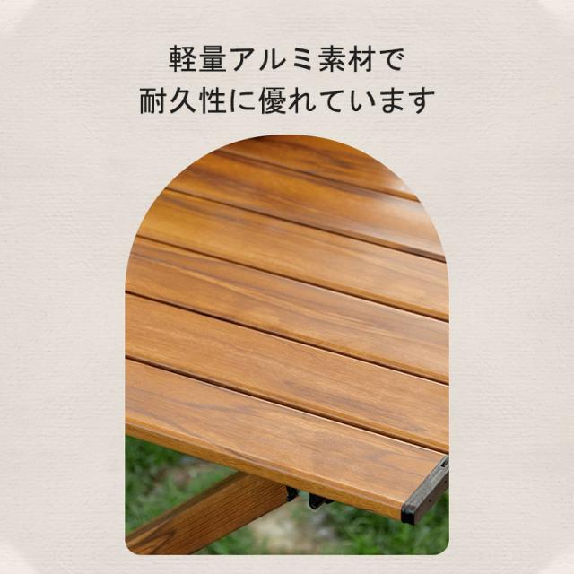 アウトドアテーブル 折りたたみ ロールテーブル キャンプテーブル 軽量 コンパクト キャンプ用 収納バッグ付 簡単組立 レジャー アルミ製 防水 お花見 庭 ハイキング BBQ 木目調 ナチュラル シンプル ファッション