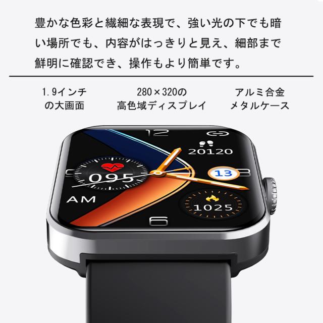 スマートウォッチ 通話機能 1.9インチ大画面 高解像度 健康管理 睡眠検測 着信通知 腕時計 血中酸素 運動モード メンズ レディース