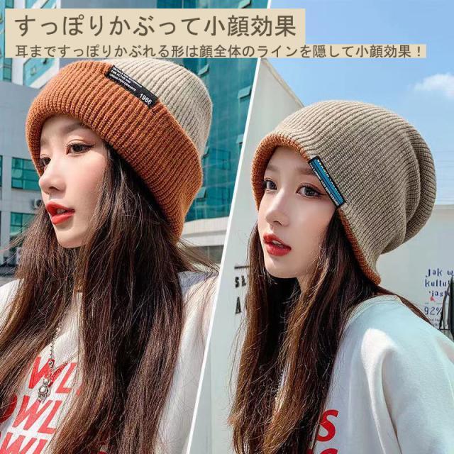帽子 レディース ニット帽 ビーニー メンズ おしゃれ ゆったり キャップ 大きい 小顔効果 厚手 外出 シンプル 秋冬 コーデ 男女兼用 柔らかい