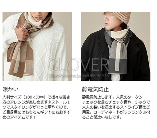 マフラー メンズ ストール 大判 秋冬 男性用 厚手 ニット 防寒 暖かい ブロックチェック 男女兼用 ビジネス マフラー バイク ゴルフ 釣りキャンプ 冬用 誕生日 クリスマスプレゼント