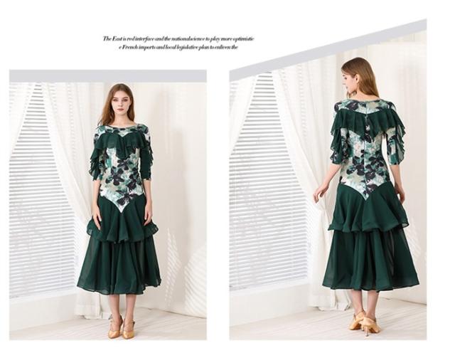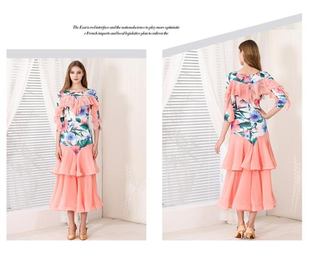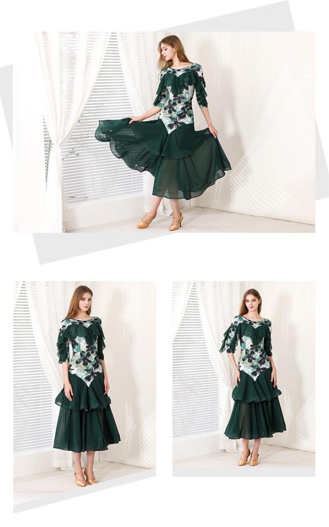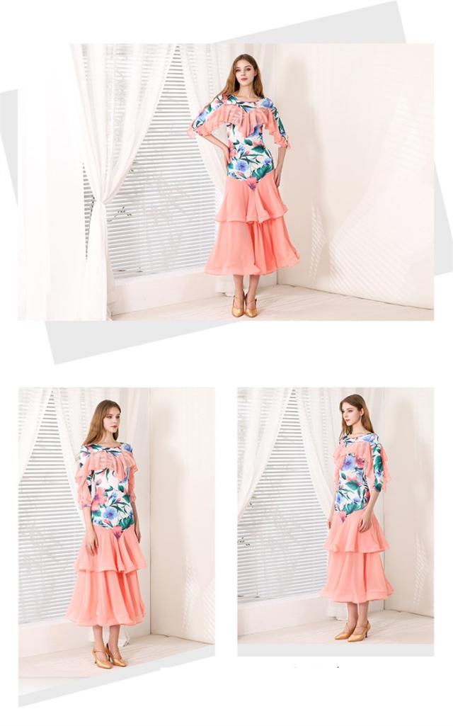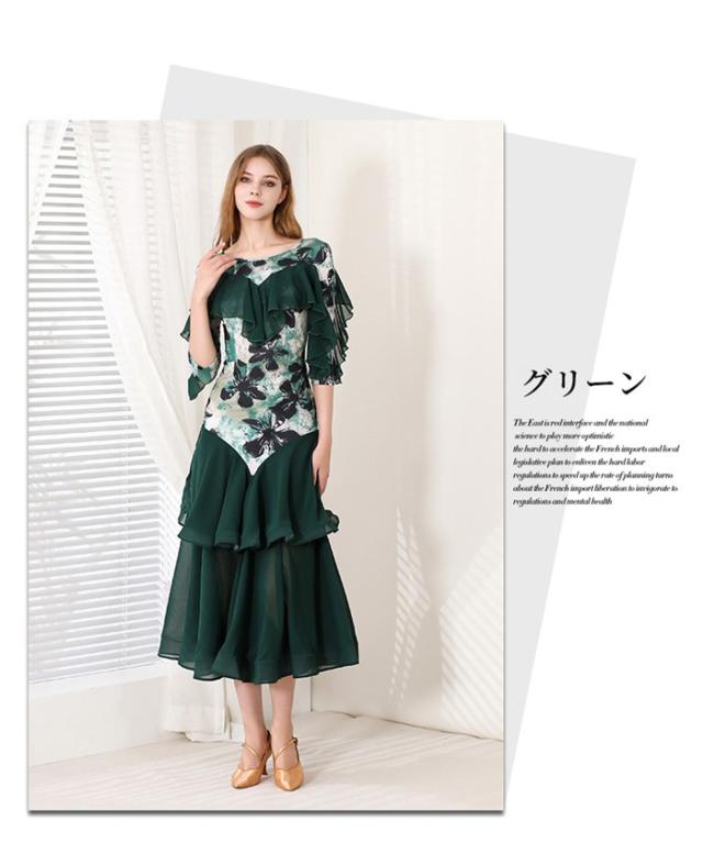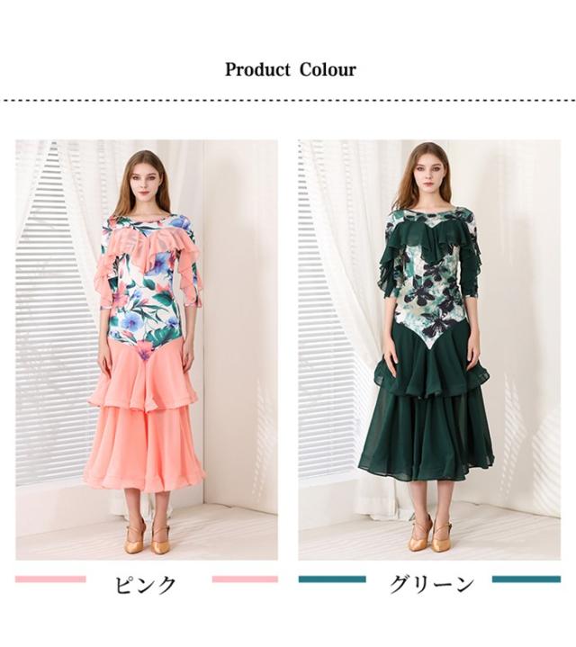 社交ダンスドレス モダンドレス ピンク グリーン 社交ダンス衣装 社交ダンス ドレス 大きい裾 スタンダードドレス ワルツダンス ステージ衣装 ダンスウェア 競技会 パーティー 発表会 競技着 練習着 舞台 演奏会 演出 d1378d7d7m5