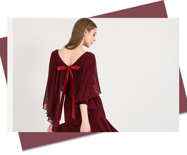 社交ダンスドレス モダンドレス ワインレッド 社交ダンス衣装 社交ダンス ドレス 大きい裾 スタンダードドレス ワルツダンス ステージ衣装 ダンス衣装 ダンスウェア 競技会 パーティー 発表会 競技着 練習着 舞台 演奏会 演出 d1377d7d7m5