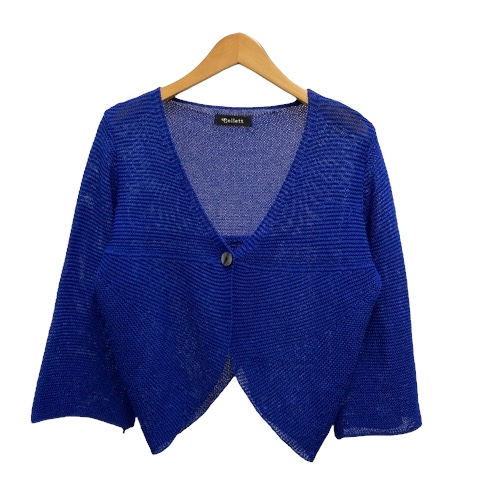【中古】コレット Collett カーディガン ニット Vネック シースルー 無地 七分袖 青 ブルー 黒 ブラック レディース