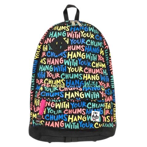 【中古】チャムス CHUMS リュックサック バックパック デイパック ロゴ 総柄 黒 ブラック マルチカラー メンズ
