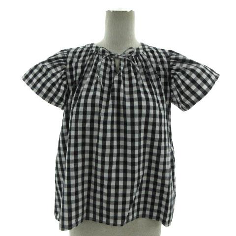 【中古】ブギ Boogie ブラウス リボン 半袖 コットン ギンガムチェック ブラック 黒 ホワイト 白 38 レディース