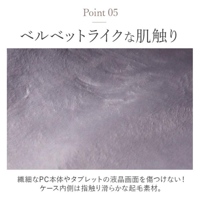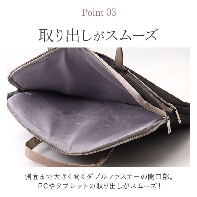| 商品説明 | 【ノートPCもタブレットもOK!】 ・薄型PCやタブレットをすっぽり収納!シンプル&スリムな「パソコンショルダーバッグ」が登場。 【機器の取り出しがスムーズ】 ・開口部は側面まで大きく開くダブルファスナーを採用し、PCやタブレットの取り出しがスムーズ。 【肉厚クッションが衝撃吸収】 ・内側には肉厚なウレタンクッションを内蔵。持ち運び中の衝撃からモバイル機器を保護。 【ベルベットライクな肌触り】 ・繊細なPC本体やタブレットの液晶画面を傷つけない!ケース内側は指触り滑らかな起毛素材。 【便利なポケット】 ・イヤホンや電源ケーブルなど周辺機器をまとめて収納できるファスナーポケット付き。 【持ち方選べる3AYタイプ】 ・手持ち、キャリーバッグに取付できるキャリーオン、付属のショルダーベルトで肩掛けスタイルも 【デバイスに合わせてチョイス】 ・お手持ちのデバイスに合わせてサイズが選べる「13.3-14inch」「15inch」の2サイズ。 (※2)お手持ちの機器のサイズをよくご確認の上、ご購入ください。 【合わせやすいシンプルカラー】 ・配色がおしゃれなベーシック&大人かわいいくすみカラーを中心にラインナップ。 【ポケット仕様】 ・前面:ファスナーポケット×1(内側:オープンポケット×2、ペンホルダー×2) ・背面:ファスナーポケット×1 |