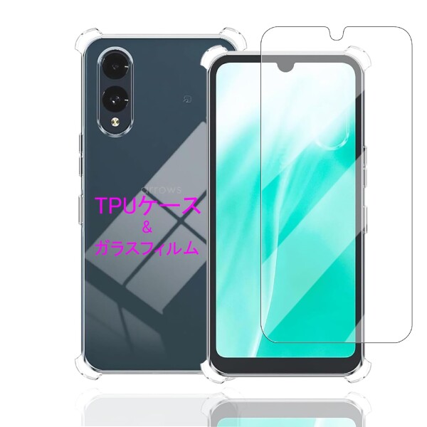 Wekrsu 対応 Arrows We2 F-52E 用の ケース + ガラスフィルム 柔軟 TPU カバー 全透明 散熱加工 黄変しにくい 日本旭硝子製 フィルム 強化ガラス 硬度9H 高透過率 飛散防止 ( 全面保護カバー 耐衝