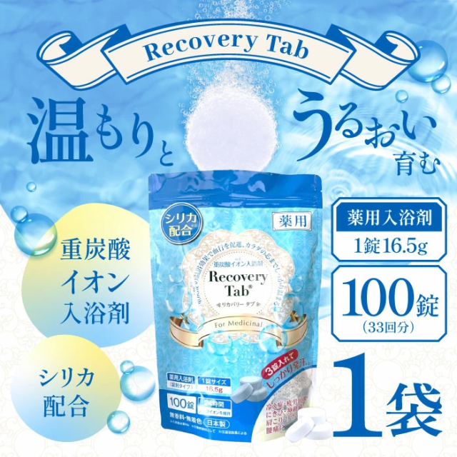 [医薬部外品]薬用Recovery Tab (リカバリータブ) 重炭酸イオン入浴剤 シリカ配合 疲労回復 腰痛 無香料 無着色 日本製 (100錠入(33回分))