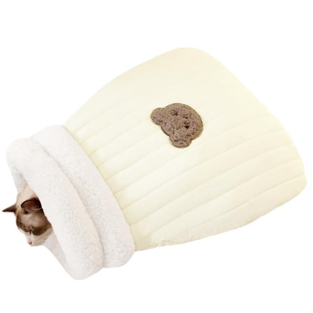 ZurZur 猫 ハウス ペット ベッド 寝袋 防寒対策 布団 密封式 猫の巣 猫寝床 筒型 裏ボア ふわふわ 柔か 暖かい 厚手 保温 防寒
