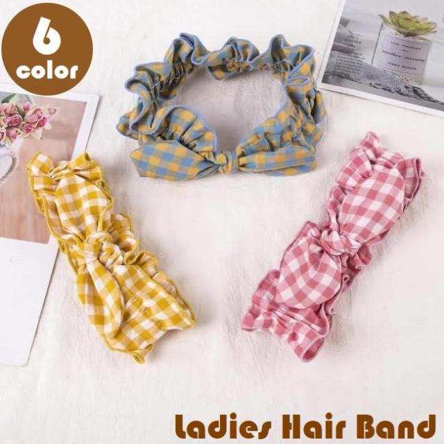 ヘアバンド レディース 女性用 ヘアアクセサリー チェック柄 柄物 リボン風 うさ耳風 ゴム シンプル かわいい キュート カジ