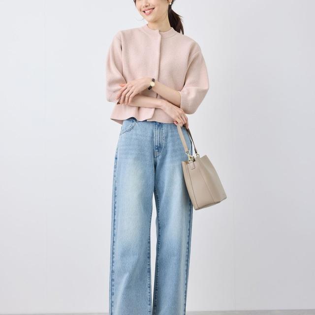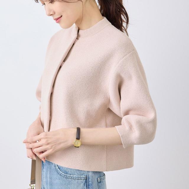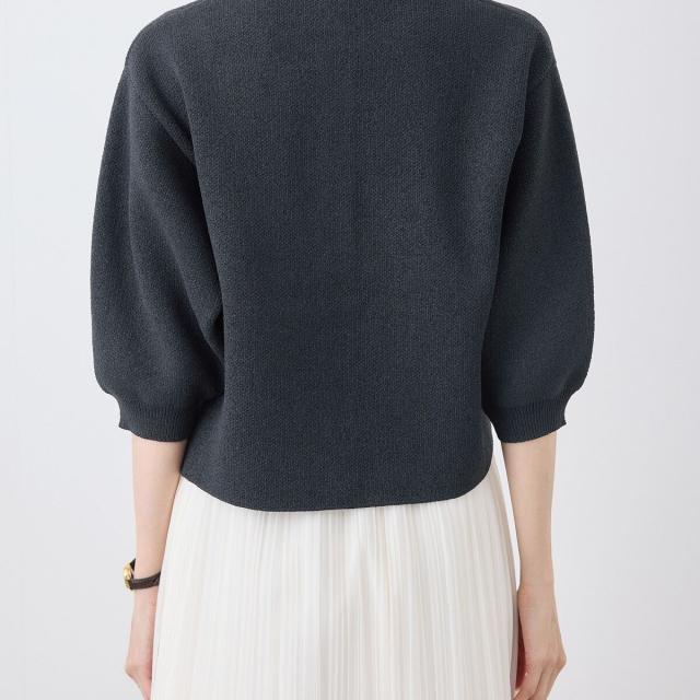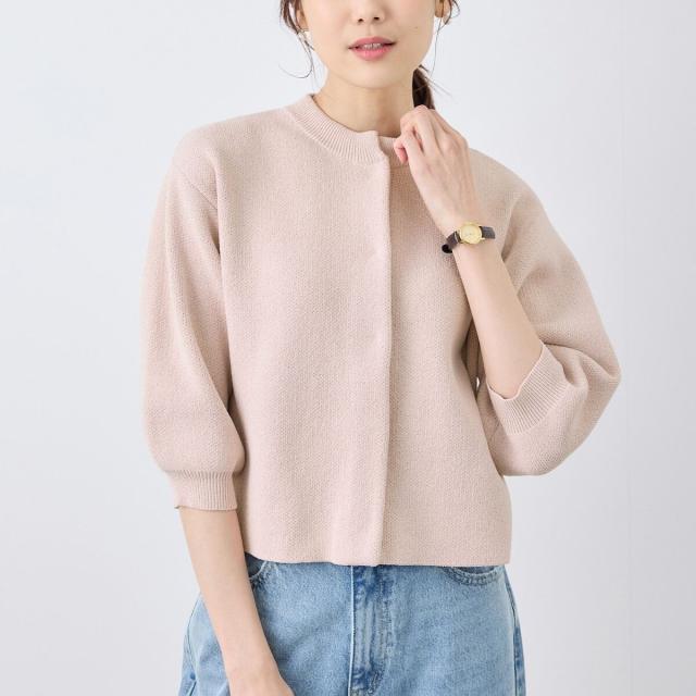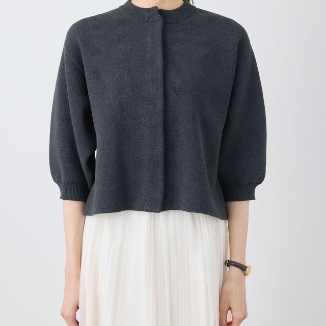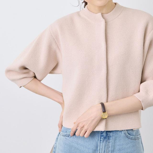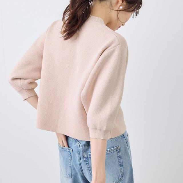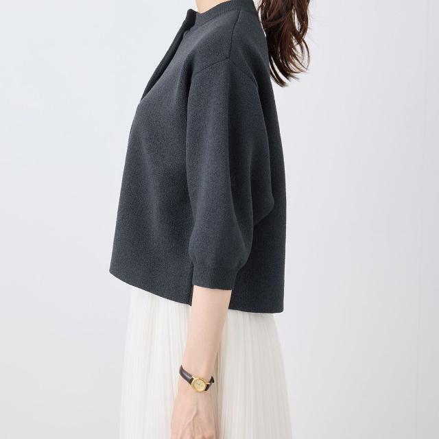 【emur/エミュール】モールヤーン畦ニット5分袖カーディガン